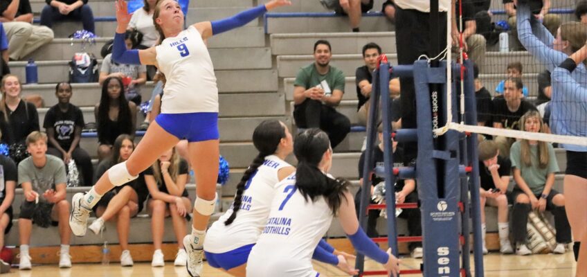 As reported by AllSportsTucson and MaxPreps, Desert Speed School athletes continue to rank among the area statistical leaders on the volleyball court. Empire standout Madison Gardner is currently ranked #1 in aces and #5 in assists, while Catalina Foothills outside hitter Molly Brunell (above) vaulted herself to the #2 slot for kills, following a dominating tournament performance in Phoenix in which she was named MVP. Meanwhile, Salpointe defensive specialist Megan Muehlebach is ranked 3rd in digs, and Mica Mountain setter Addy Andrews is 5th in assists for her 4A Gila Region champion Thunderbolt team.
