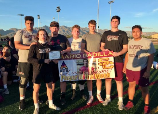 Desert Speed School athlete and Salpointe running back Mario Padilla was honored by AllSportsTucson this week as Week 9 Player of the Week. This follows his performance in a Salpointe win over Catalina Foothills in which he amazed 128 yards rushing and 89 yards receiving to go along with 3 touchdowns for the Lancers. The win moved Salpointe to 9-0 and the #1 4A ranking in the state.