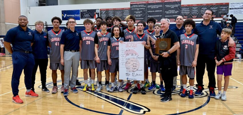 As reported by Andy Morales of AllSportsTucson, Desert Speed School athletes Cisco Llamas and IsaacTeasley were part of the Sahuaro basketball team that came away with a Pima Holiday Classic title. Battling to a 70-69 semifinal win over Tucson High, the Cougars won the title game 59-53 over AZ College Prep behind Llamas’ 22 points.